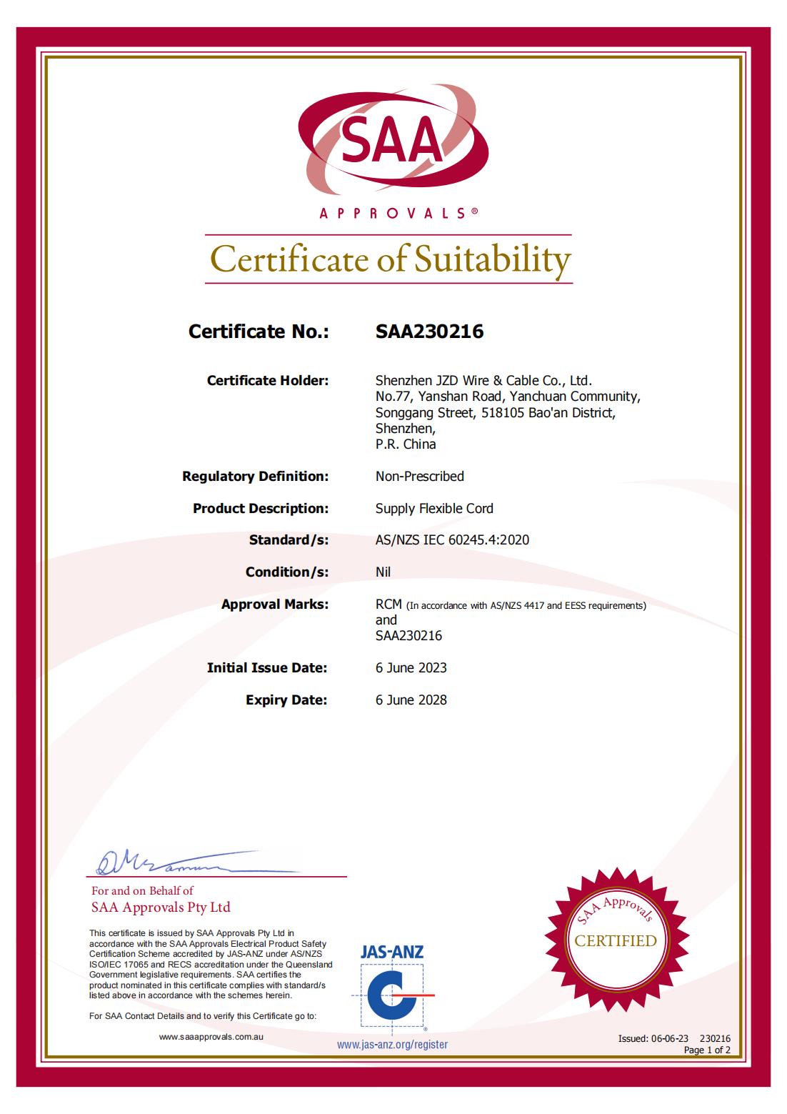 SAA澳洲認(rèn)證線